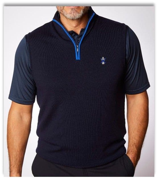 Home / Knitwear / Glenbrae Merino Slipover ¼ Zip- Navy / Royal Blue Glenbrae Merino Slipover ¼ Zip- Navy / Royal Blue Stock Status: In Stock WAS £95 NOW £80 Stock Status: In Stock WAS £95 NOW £80 Size: XL XXL Members Only - Login To Purchase Description A merino wool ¼ zip-neck slipover with fantastic contrasting colours. As with all Glenbrae Merino jumpers, the garment is breathable, naturally regulating the body temperature, filters UV rays and removes perspiration and moisture from the body Fabric Details 100% Merino Wool Made in the UK Wash it with similar colours at 30°C using wool specific detergent Click here for clothing Sizing Guide download Attributes Colour : Navy/Royal Blue Size: X Large Gender: Mens Brand: Glenbrae Weight: 0.5kg